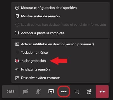 * Para iniciar la grabación, selecciona el botón Más acciones > Iniciar la grabación