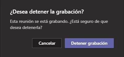 - Se detendrá automáticamente cuando todos los participantes se desconecten de la reunión.