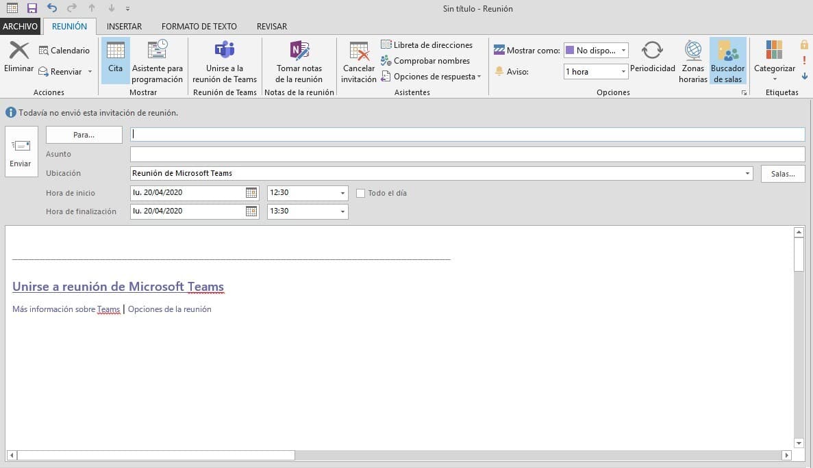 Microsoft Teams incluye un complemento de Outlook que te permite crear reuniones de Teams directamente desde Outlook.